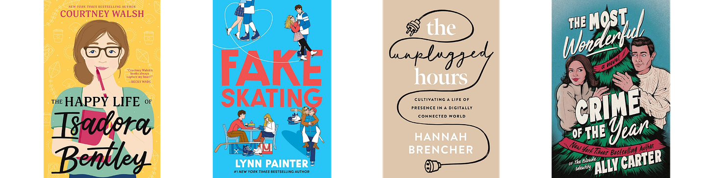 The Most Wonderful Crime of the Year by Ally Carter - My first Christmas read of the season! I really enjoyed Ally Carter’s writing and pacing, as well as the world she built to set the stage for both the mystery and the romance — the cast of unique characters, the remote setting, and all of the secrets. It was a little out of my comfort zone (with the murder mystery) and yet such a fun holiday read!